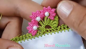 İNCİ BONCUKTAN ÇİÇEK TIĞ OYASI YAPILIŞI